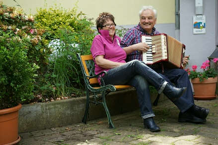 und am Abend...Freuen Sie sich auf die gesellige Runde draußen bei einem unserer Grillabende, oder drinnen im Aufenthaltsraum am Kamin, wenn der Hausherr zum Akkordeon greift, wer möchte da nicht mitsingen?
