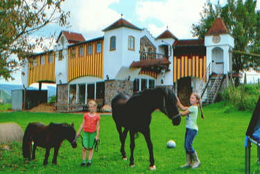Spielplatz mit Sandkasten, Rutsche und Schaukel , Spielzimmer,